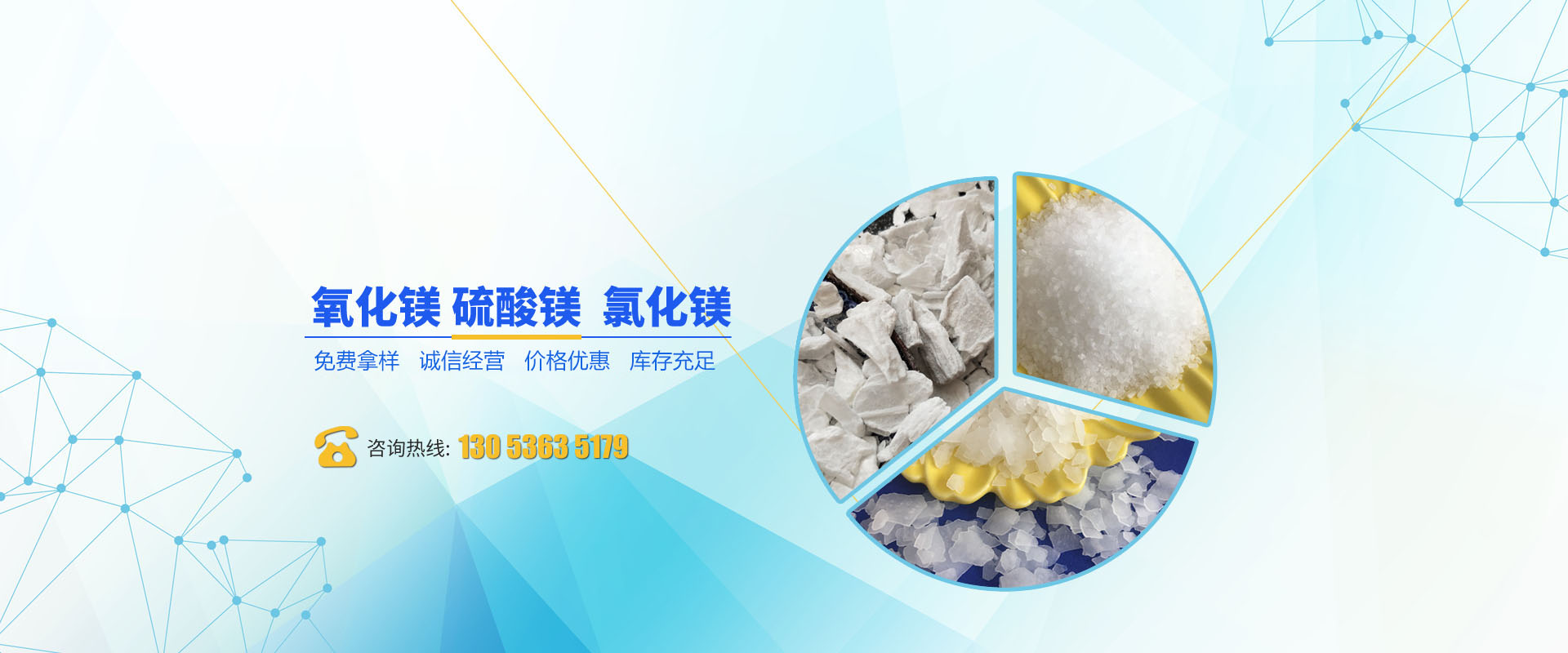 • 公司主要經銷工業鹽、氯化鈣、碳酸鈉、硫酸鈉、硫酸鎂、氧化鎂、氯化鎂、融雪劑等產品。